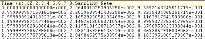 The data has been recorded with a sampling frequency of 250 Hz.